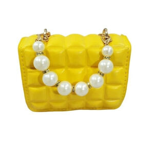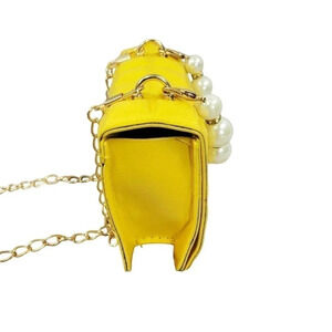 Yellow Golden Mini Clutch Handbag Purse. Pearls and Sparkles