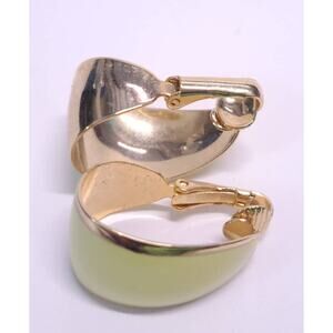 Yellow Goldtone Clip On Earrings Vintage Enamel 1 inch Hoop Huggie Jewelry