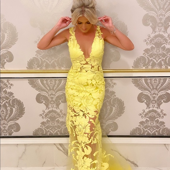 Stunning dress. Worn ones for about 2/3 hours in excellent condition. A size 0 but material fits a 2… beautiful tail and has a bustle