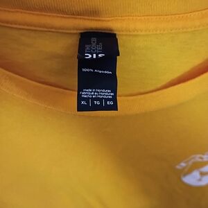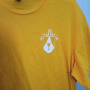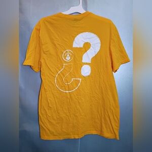 Bright yellow t-shirt with a unique graphic design. Perfect for casual wear. #84