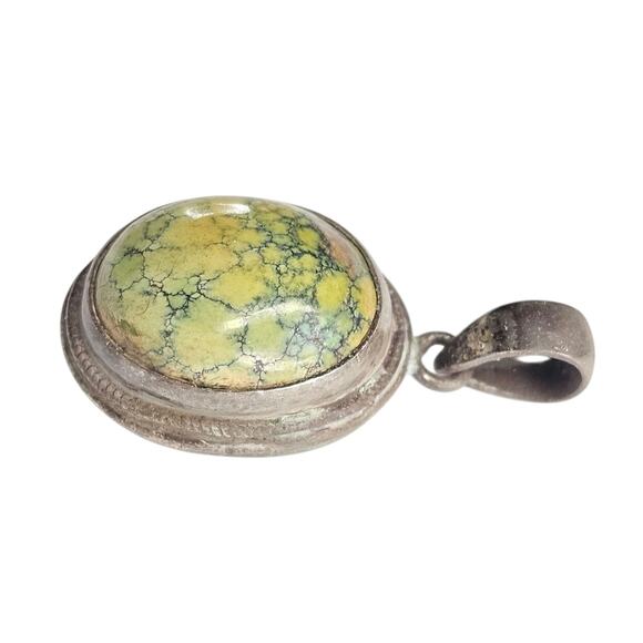Yellow Green Spiderweb Variscite Sterling Pendant, Native American Style