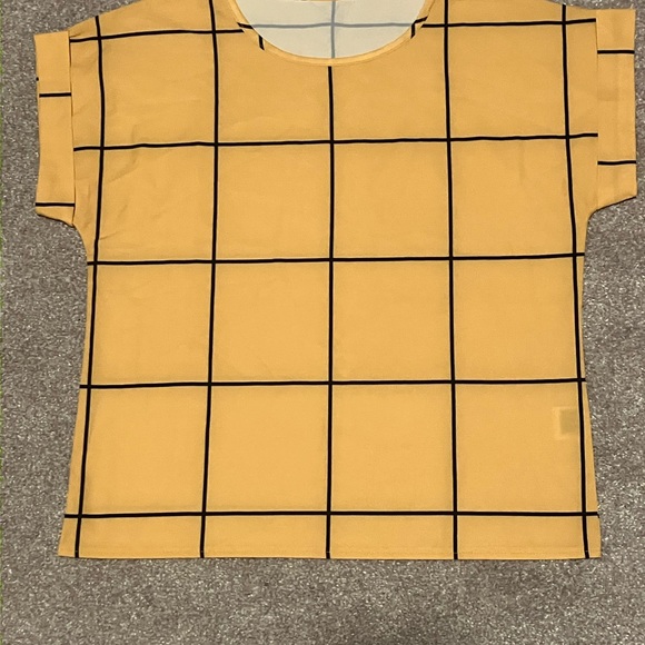 Stylish yellow top with a bold black grid pattern. Perfect for casual wear.