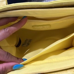 Yellow handbag has a zip closure with double compartments and and a inside side zip compartment . Pretty double tassel design in front, perfect color for summer.