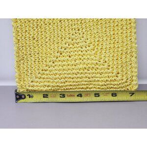Yellow Handwoven Clutch Bag With Zipper Closure & Pom-Pom Accent Made In Korea