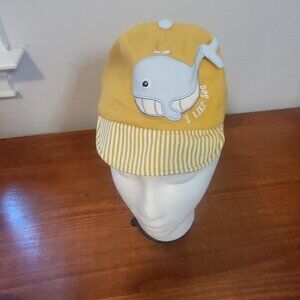 Yellow Happy Whale Baby/Toddler Sun Hat w Plastic Rain Cover
