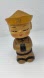 Charming vintage nodder figurine, featuring an Asian figure in a traditional gold outfit and hat. This delightful piece has a bobble head design with a spring connecting the head to the body, allowing it to nod with a gentle touch. The figure showcases intricate details, including rosy cheeks, rhinestone eyes, and a neatly braided ponytail. Perfect for adding a touch of cultural charm to your home decor, a whimsical addition to a collector's display, or a unique gift for someone who appreciates vintage Asian-inspired art.