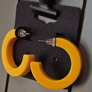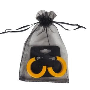 Yellow Hoop Earrings 1.2" Retro 1980s Neon Chunky Pierced Acrylic Gift Bag Y2K