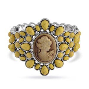 Yellow Howlite and Cameo Bangle Bracelet in Silvertone (7") 26.00 ctw