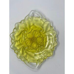 Yellow Indiana Glass Wild Rose Cake Plate no chips cracks Stunning 12" with hand