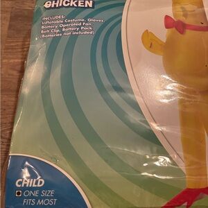 Fun yellow inflatable bird costume with red accents. Perfect for parties and events.