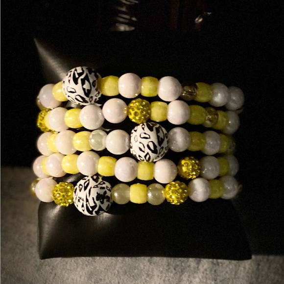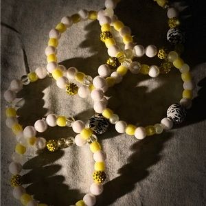 Yellow & White set with zebra accent beads. Made with stretch cord