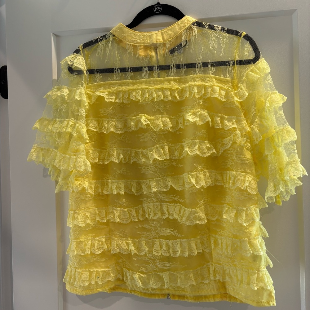 Brighten your wardrobe with this stunning yellow lace ruffle top. Perfect for any occasion, this top adds a touch of elegance and style.