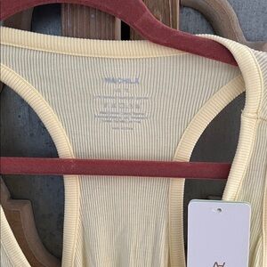 Stylish yellow layered tank top and shortie pajamas. Soft and comfy.