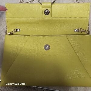 Brighten your look with this stylish yellow leather bag. Featuring a chic chain strap and elegant design, it's perfect for any occasion.