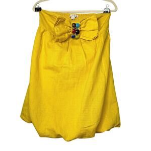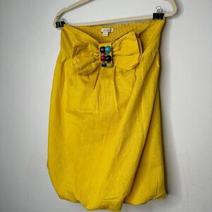Twentyone Yellow Linen Sleeveless Blouson Blouse / Mini Dress Embellished Beaded Bow Tie Front