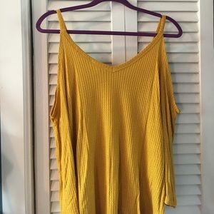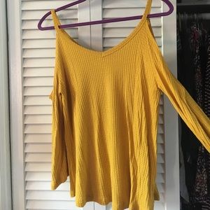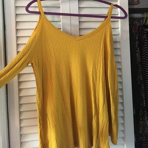 NEVER BEEN WORN!!!!Yellow long sleeved shirt with the shoulders cut out. Perfect top for the fall! It's loose and flowy. Very comfortable! ((size is a large in juniors))