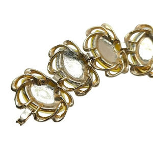 Yellow Lucite Thermoset Flower Bangle Bracelet Fold-Over Clasp Gold Tone Vintage
