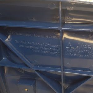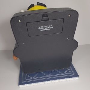 Yellow M&M sitting in black La-Z-Boy chair on blue rug. Rare item from 1999. Not in box, never used, only on shelf as display.