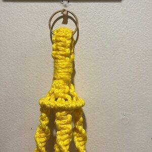Bright yellow macrame plant hanger. Perfect for adding a pop of color to any room.
