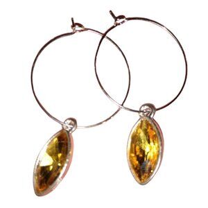 Sunshine Yellow Marquis Rhinestone Silver Charm Hoop Earrings CZ Crystal Dangle Hoops
