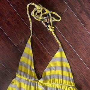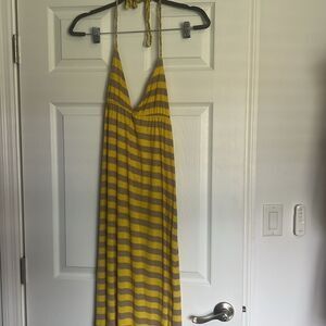 Yellow Maxi Dress - Halter Striped Dress - Beaded - Size Small