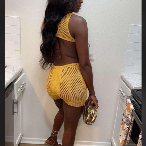 Yellow Mesh Two-Piece Set