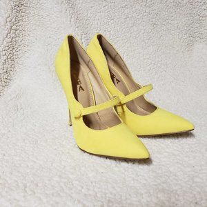 Yellow Micro Fiber Pointy Toe High Stiletto Heels