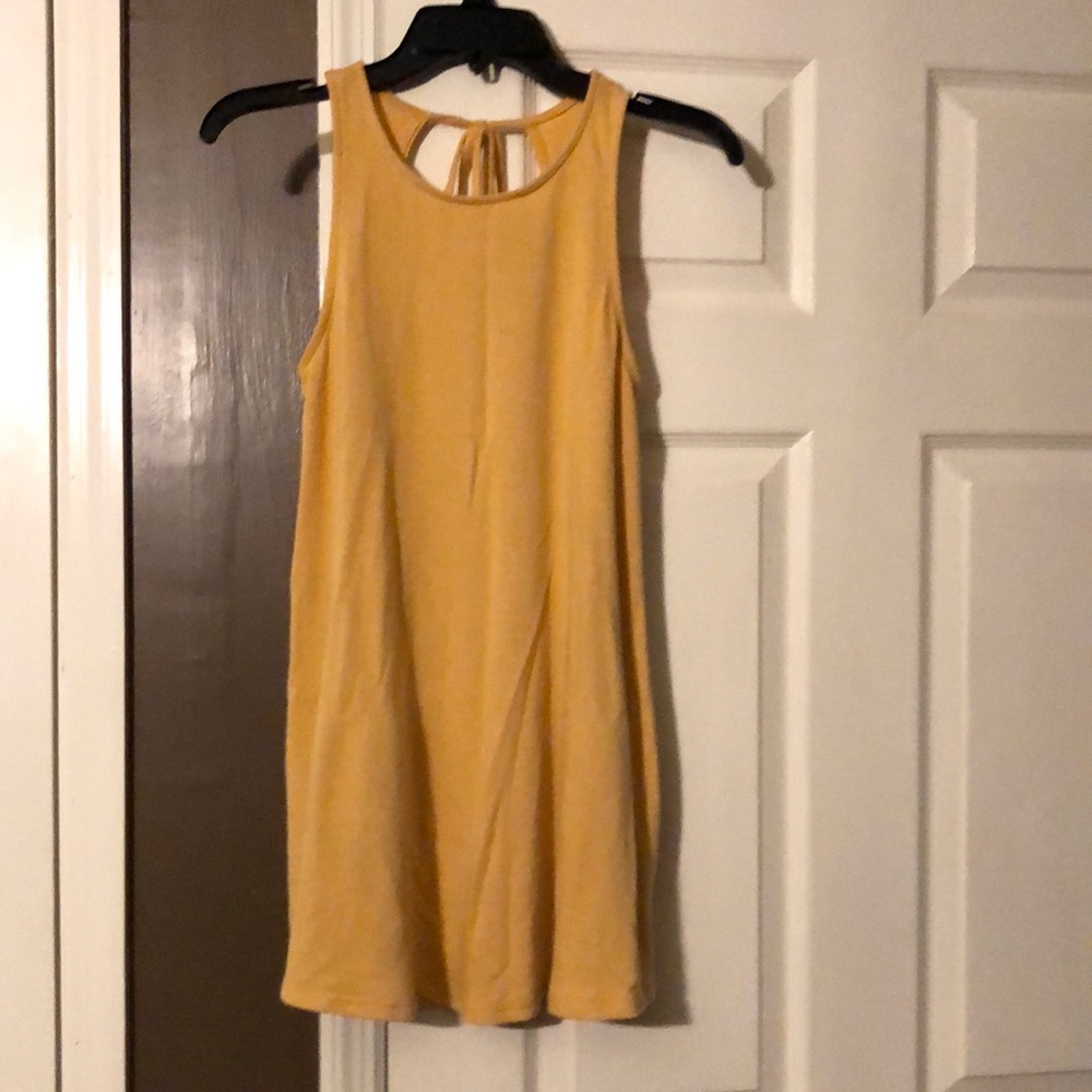 Yellow Mini with low back, ties in back, has pockets!! Super cute! Purchased without trying it first and it is too short. So disappointed!! I love this dress! My loss is your gain ❤️