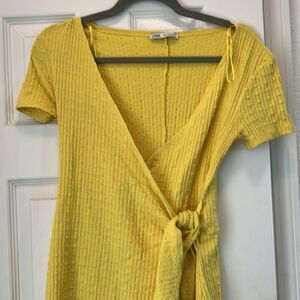 Yellow Mini Dress - Summer Cute Dress - Size Small - Zara Wrap Dress