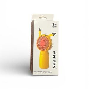 Pikachu like handheld mini fan. Cute yellow mini fan with playful ears. Perfect for cooling.