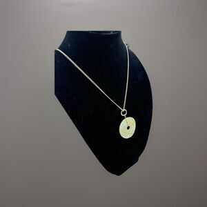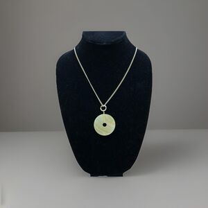 Yellow Mother of Pearl Donut Pi Disc Pendant Necklace Silver Tone Curb Chain