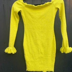 Has a band for stretchy fit tiny stain on bottom left of dress but never worn before