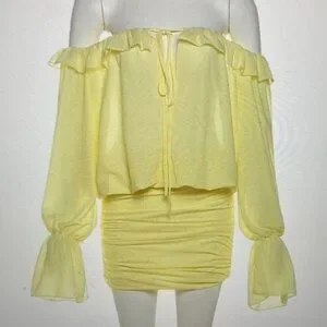 Yellow Off-Shoulder Ruffle Two-Piece Set