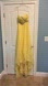 Like new! Elegant formal yellow long dress featuring a one-shoulder design and flowy layers. Adorned with sparkling silver accents. This dress is stunning! It was worn one time for a few hours. 16” across the chest, 14” across the waist at sequins, loose and flowy below that. From bottom of waist sequins to bottom of dress front is 42”, to dress back is 57”