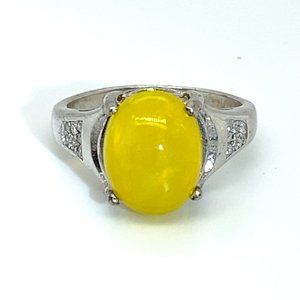 Yellow Opal 3.71ct Platinum Finish Solid 925 Sterling Silver Ring