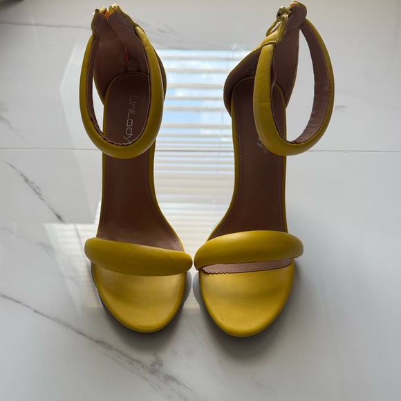 Step out in style with these vibrant yellow open-toe sandals. Perfect for any occasion, these shoes offer both comfort and elegance. Used Good!