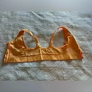 22” in diameter bra band. Comfortable and pretty. Yellow / Orange sports bra with zip up front enclosure.