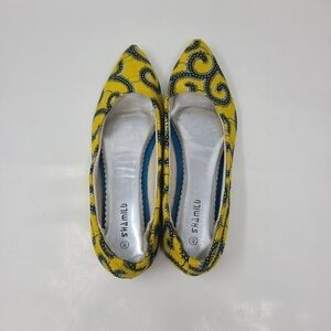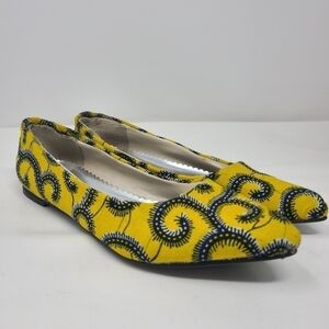 Step out in style with these vibrant yellow patterned flats. Perfect for any casual outing.