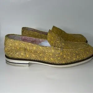 Step out in style with these vibrant yellow patterned loafers. Perfect for adding a pop of color to any outfit.