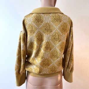 This stylish yellow sweater features a unique pattern, perfect for adding a pop of color to your wardrobe. Ideal for casual outings or cozy days at home.