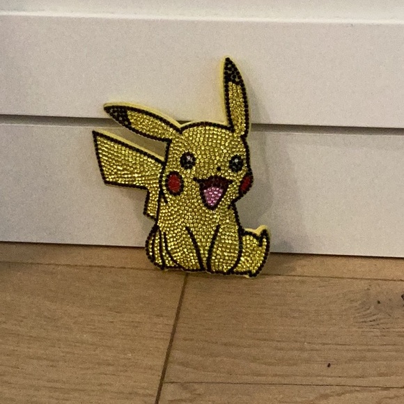 Sparkling yellow Pikachu patch with rhinestones. Perfect for adding a playful touch to clothing or accessories.