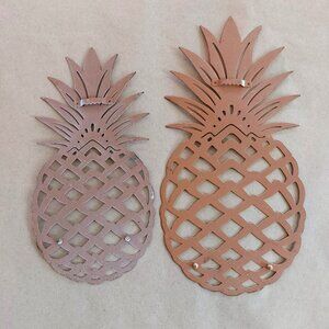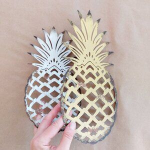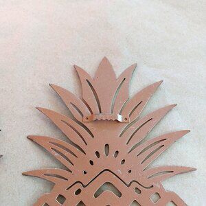 Add a touch of tropical charm to your home with this set of two rustic pineapple wall hangings. Bring a vintage island vibe to any space. Perfect for kitchens, patios, entryways, or gallery walls, their weathered edges give off a farmhouse-meets-coastal appeal. Lightweight and easy to hang.