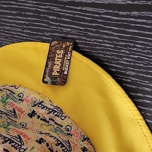 Bright yellow bucket hat with Pittsburgh design. Features a bold 'P' logo and colorful accents.