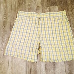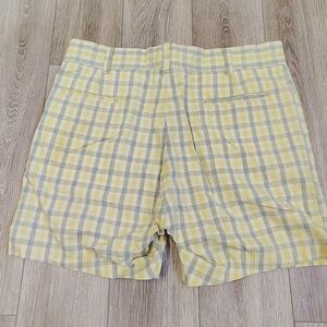 Stylish yellow plaid men's shorts perfect for casual outings. Comfortable and trendy design.