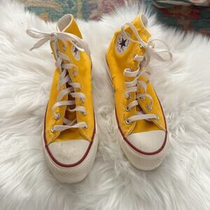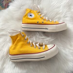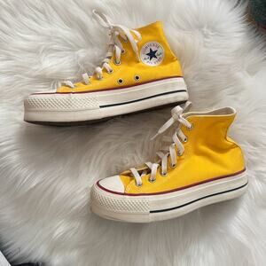 Pair of high-top/hi-top platform Converse All Star sneakers in yellow. Only worn once and in great condition! May have some light scuffing, but hardly noticeable.