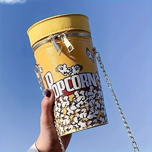 Popcorn meets fantasy! This Yellow Popcorn Crossbody Bag isnt just a quirky accessoryits a whimsical treasure curated with Nerdy Dragon charm. With its playful popcorn pattern, gold-tone chain strap, and secure zip closure, its perfect for movie nights, cosplay outings, or simply adding a dash of magic to your everyday look.