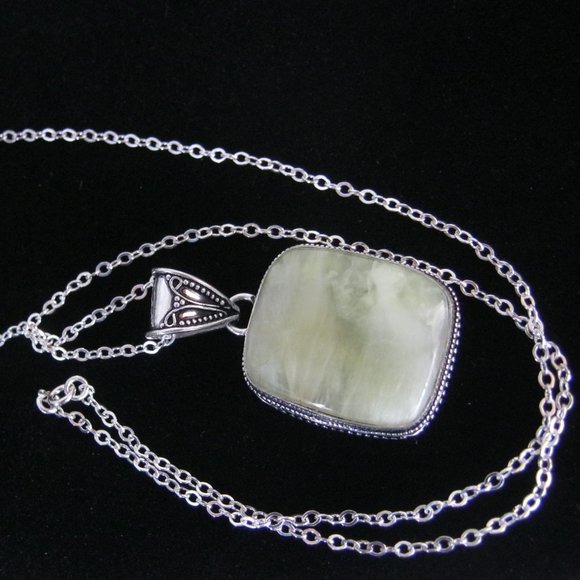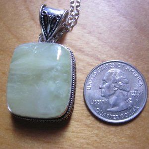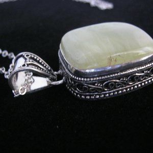 Up for sale is a Pastel Yellow Prehnite 925 Silver Overlay Bali Style Pendant Necklace and a sterling silver chain.