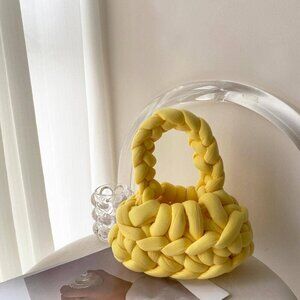Yellow Preppy Women's Polyester Vacation Top Handle Crochet Bag