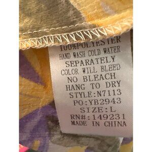 This sheer kimono cover-up features a delicate floral pattern in yellow and purple hues, complemented by lace trim. Its lightweight polyester fabric ensures comfort and breathability, making it versatile for various settings, from beach outings to casual gatherings. With an elastic waist and button closure, it offers a flattering fit.