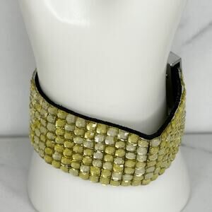 Yellow Rhinestone Studded Heart Lock Bracelet